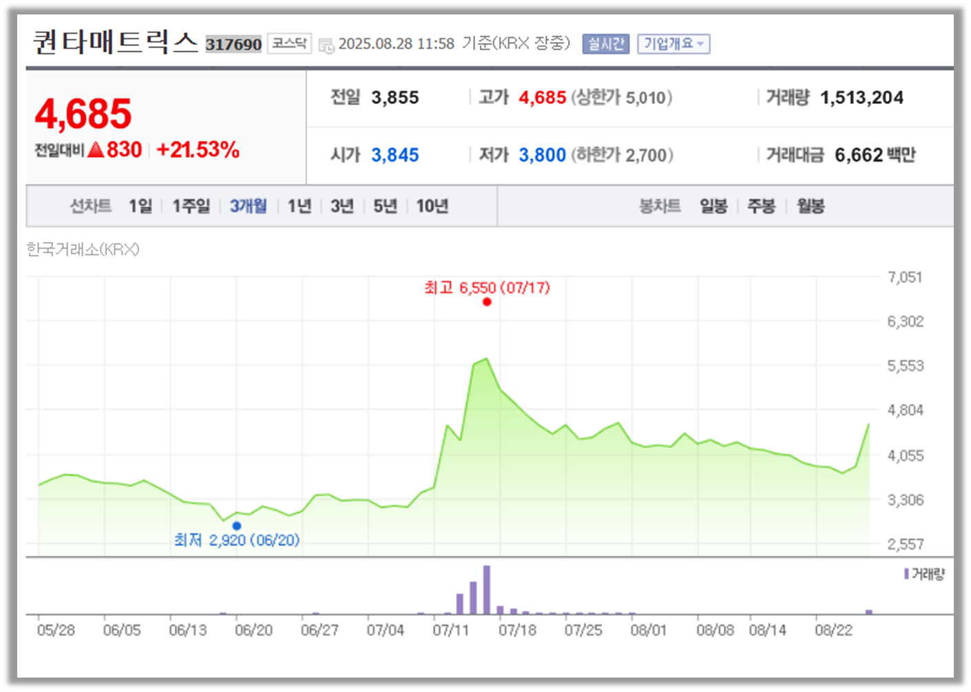 퀀타매트릭스 주가 정보