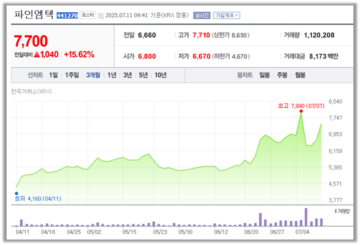 파인엠텍 주가 정보
