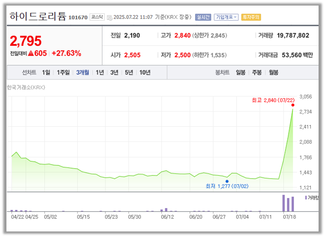 하이드로리튬 주가 정보